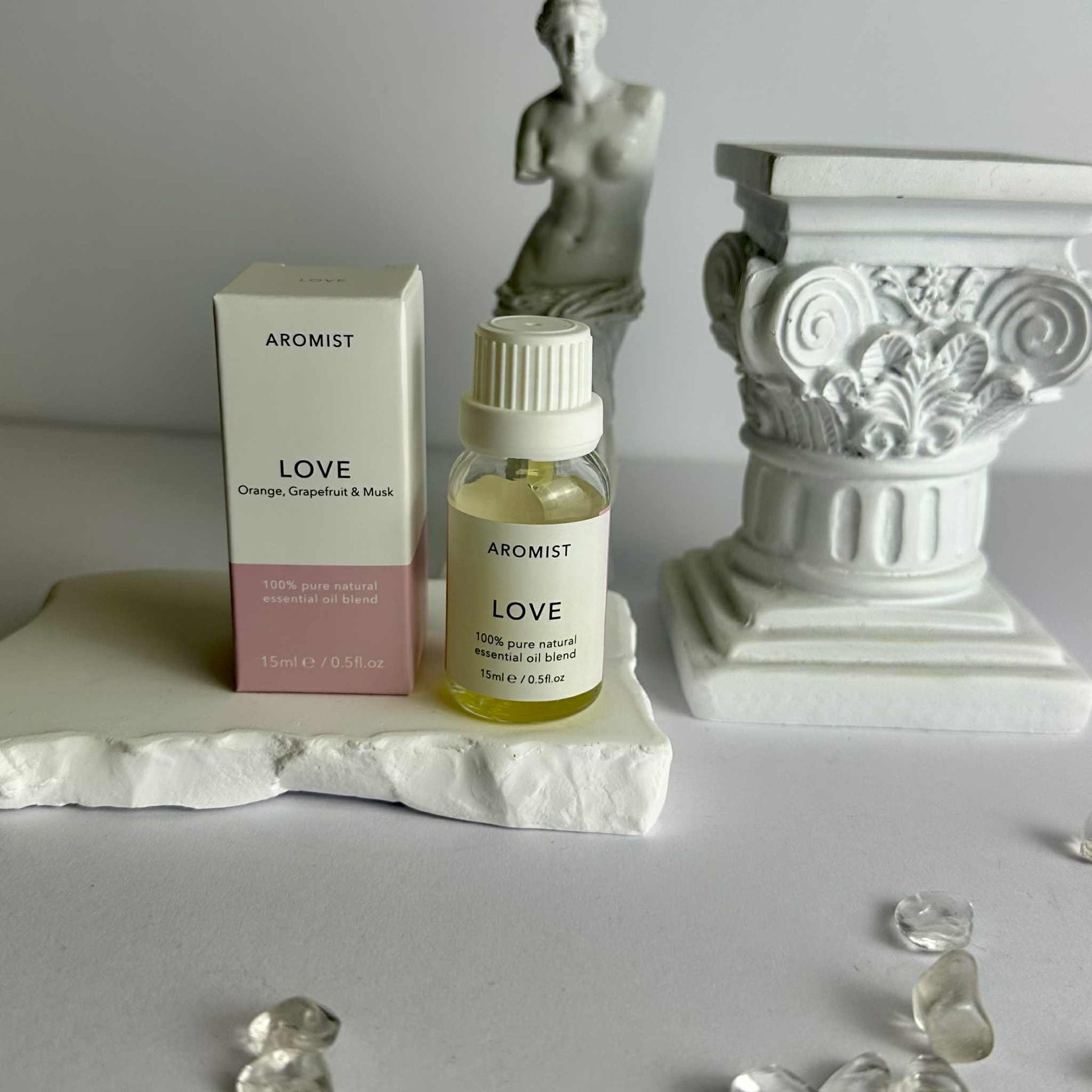 The Aromist "Love" essential oil blend is a 100% pure and natural combination of citrus and warm, secure aromas, designed to uplift the spirit and promote feelings of warmth and emotional security.