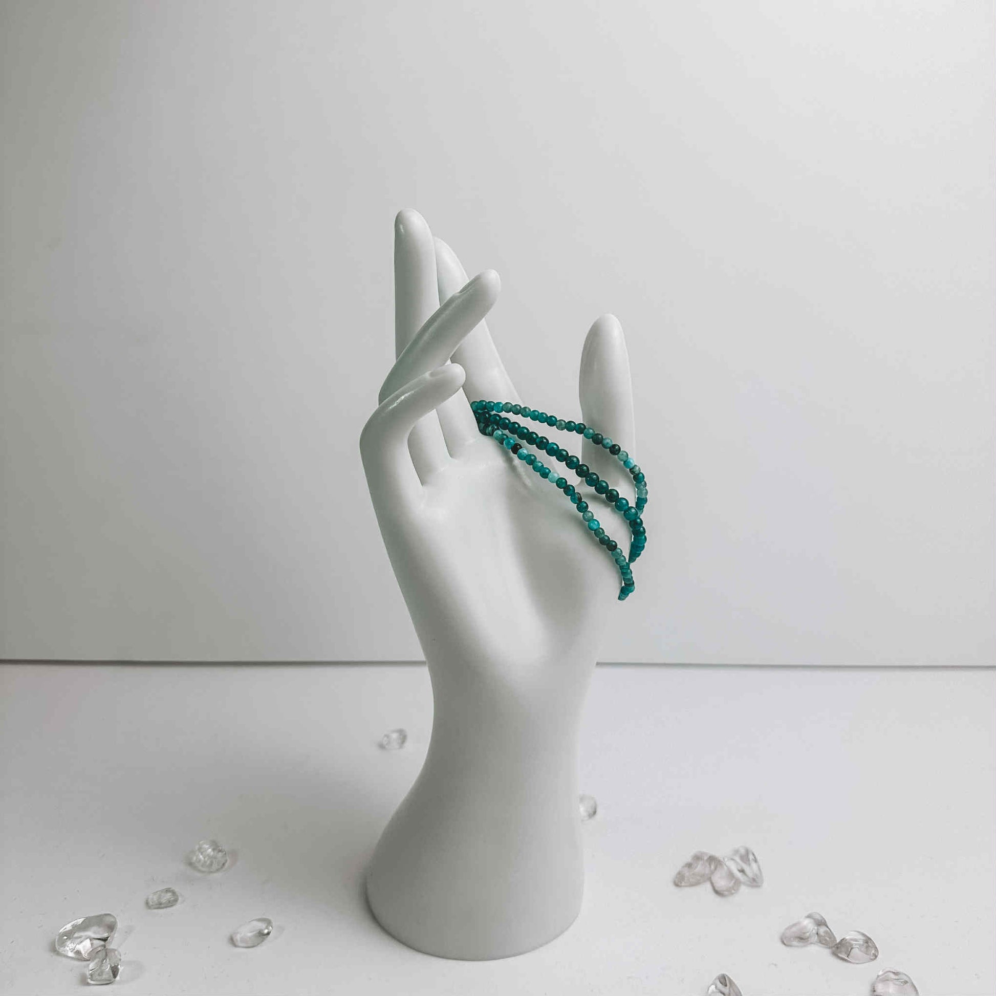 Blue apatite bracelets are associated with clarity, communication, and motivation. They are believed to enhance focus, support personal growth, and help you manifest goals. The stone is connected to the throat and third eye chakras, which relates to speaking your truth and intuition.