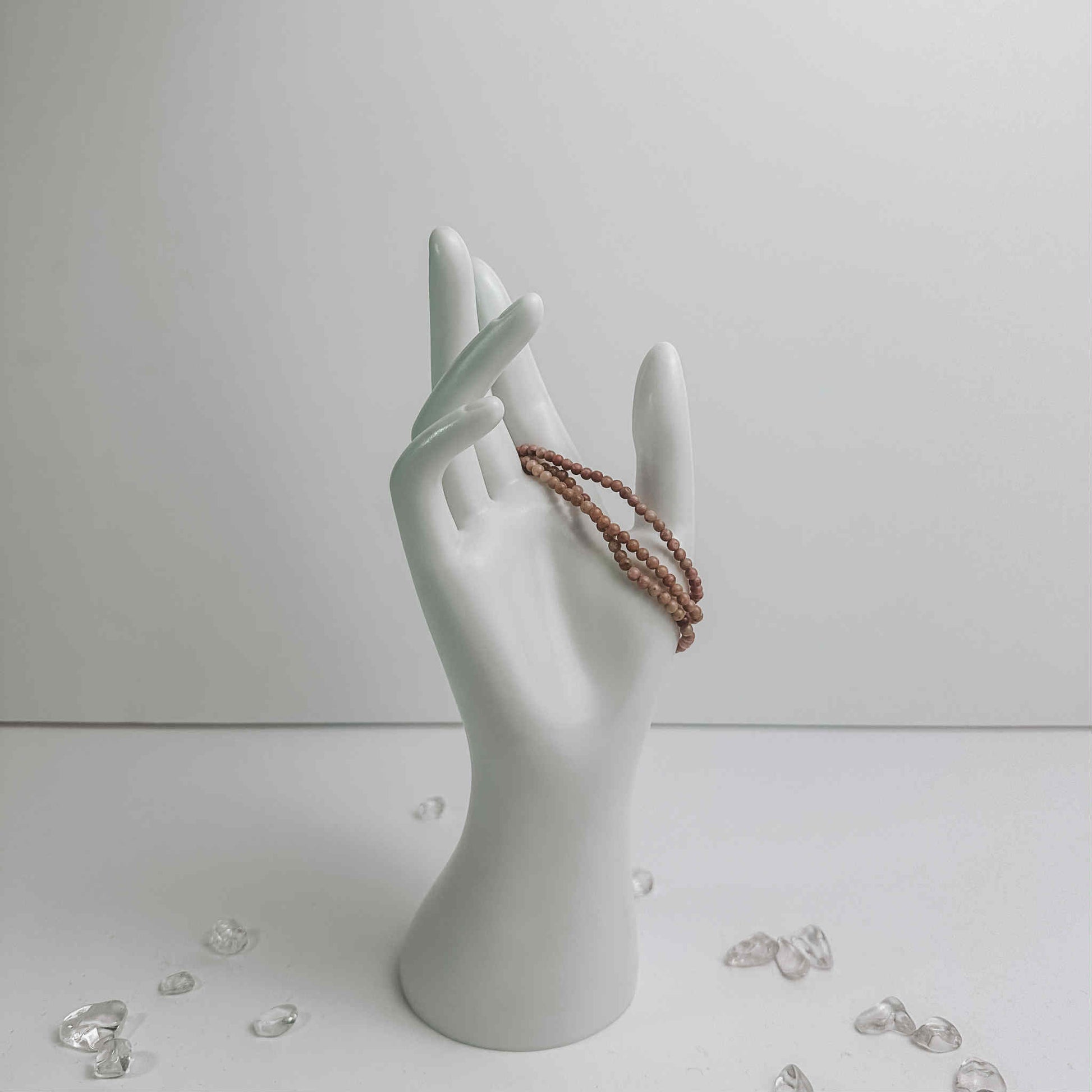 Rhodonite bracelets symbolize love, compassion, and emotional healing, helping to mend a "bruised heart" and find inner balance. They are believed to encourage self-love, generosity, and self-discovery, making them ideal for emotional support during times of stress or grief.