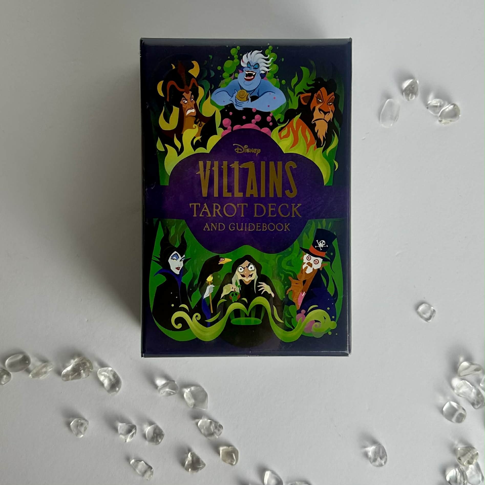 The Disney Villains Tarot Deck and Guidebook is a 78-card tarot deck featuring iconic Disney villains like Maleficent and Ursula, reimagined in original illustrations based on classic tarot iconography. It includes both the Major and Minor Arcana and is accompanied by a guidebook that explains the meaning of each card and provides simple spreads for readings. The deck is packaged in a decorative gift box and is intended for both Disney fans and tarot enthusiasts.