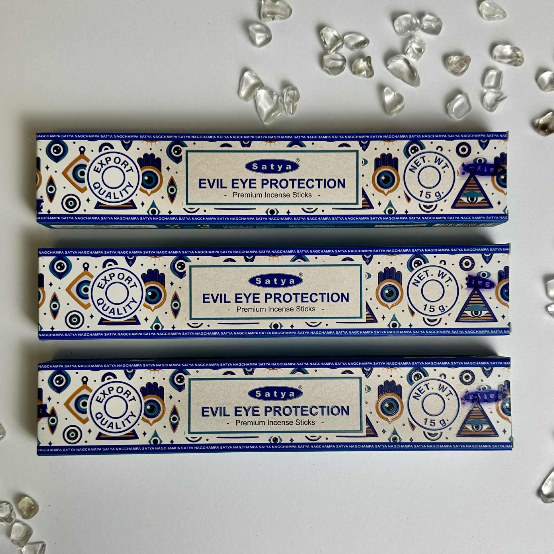 Satya Evil Eye Protection Incense is a traditional Indian masala incense, often featuring a floral, oriental, and musky scent, crafted to create a protective atmosphere and shield against negative energies. Used for spiritual cleansing, meditation, and inviting positivity, the hand-rolled sticks are designed to purify a space and foster a sense of safety.