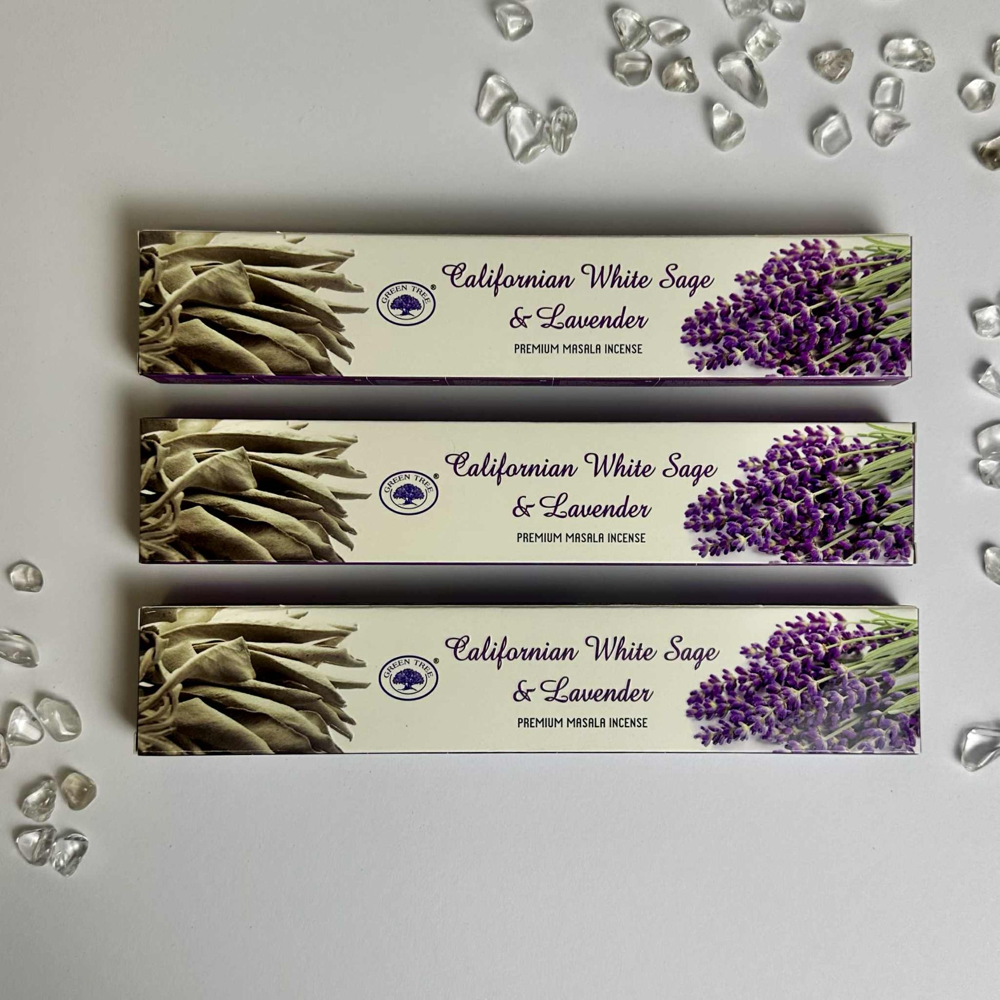 Green Tree's Californian White Sage & Lavender is a premium, natural masala incense that combines the cleansing properties of white sage with the relaxing aroma of lavender. These hand-rolled sticks feature a rich blend of traditional Indian herbs, resins, gums, woods, and oils, creating a calming scent to promote relaxation, positive energy, and aid in spiritual practices like meditation and yoga.