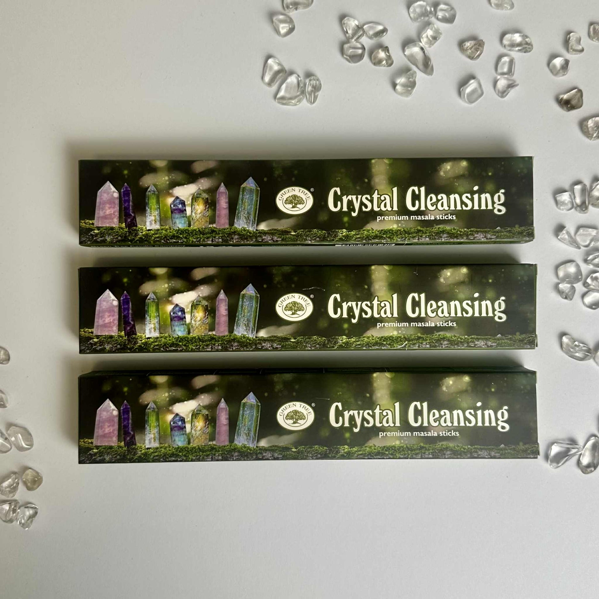 Green Tree's Crystal Cleansing Incense is a hand-rolled stick made from natural herbs, resins, and oils, designed to cleanse and re-energize crystals and other spiritual tools. This Masala-style incense is made using traditional Indian recipes, creates a long-lasting, high-quality fragrance, and is a plastic-free, cruelty-free option for spiritual practices.