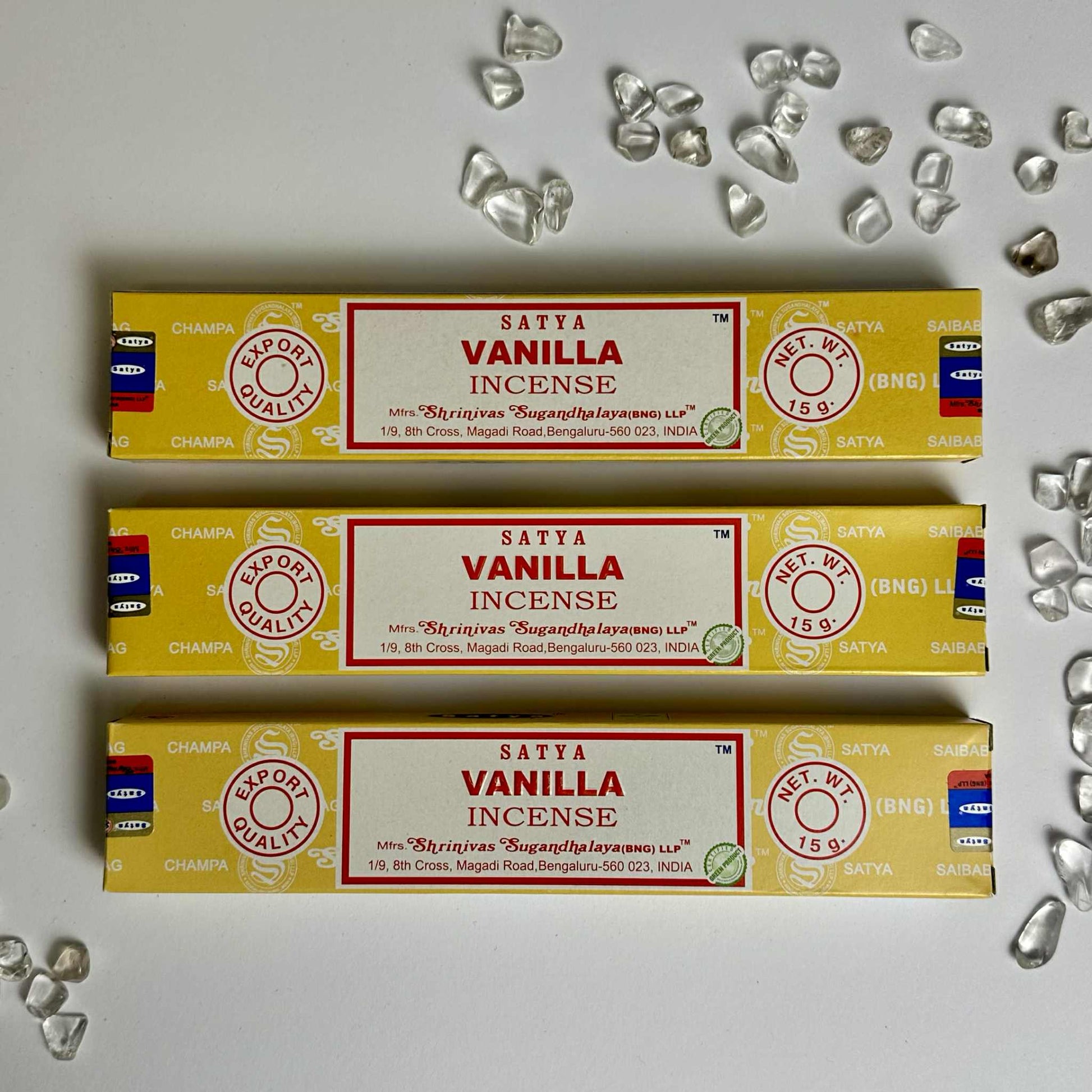Satya Vanilla is a premium, hand-rolled incense from the Satya brand, known for its sweet and comforting aroma. Made using natural ingredients and the traditional masala/flora technique, each stick is designed to create a warm, inviting, and tranquil atmosphere, often used for relaxation, mood enhancement, and creating a cozy environment.