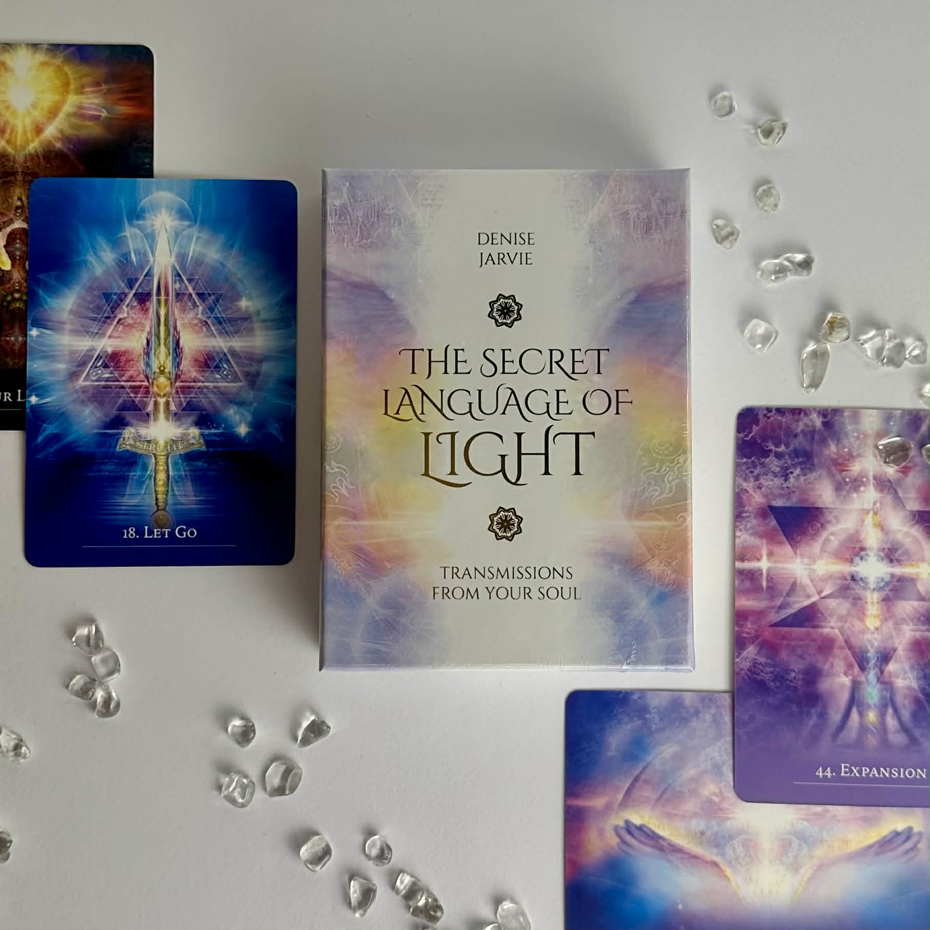 The Secret Language of Light Oracle - Transmissions from your soul is a 45-card oracle deck and 164-page guidebook created by author Denise Jarvie and artist Daniel B. Holeman. It is designed to be a tool for self-discovery, spiritual awakening, and connecting with the "light of your soul".