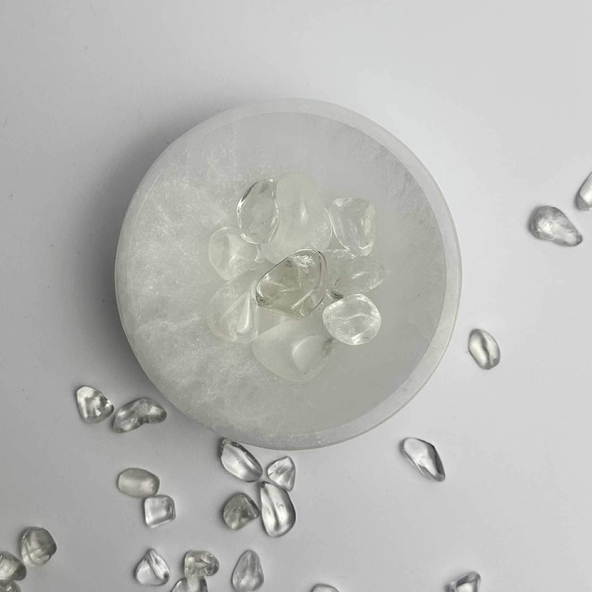 A tumble stone is a piece of Clear Quartz that has been polished to a smooth, rounded shape, making it suitable for carrying or use in various practices. Known as the "Master Healer," Clear Quartz is believed to amplify energy, promote mental clarity, and cleanse negative energy, making it a powerful tool for spiritual growth and balance.