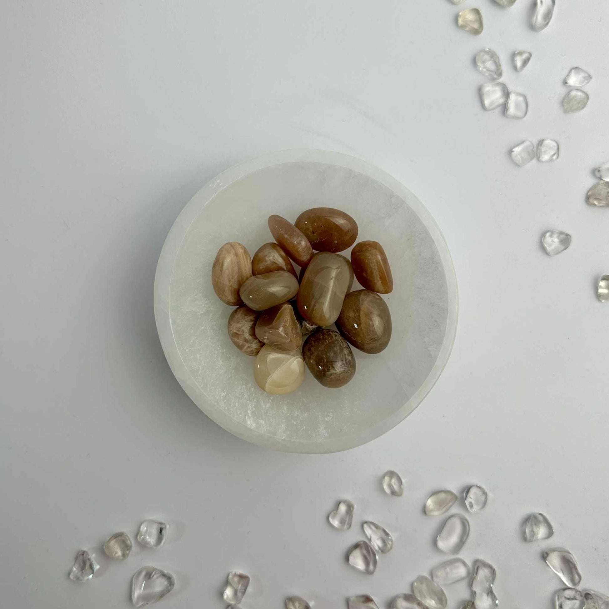 Peach Moonstone is a stone of emotional healing, self-love, and new beginnings that promotes inner peace and balance. It is known to soothe anxiety and anger, connect you to your intuition, and inspire creativity and positive personal growth. Often associated with feminine energy and the moon, this beautiful stone provides comfort, encourages healthy relationships, and helps one navigate emotional transitions.