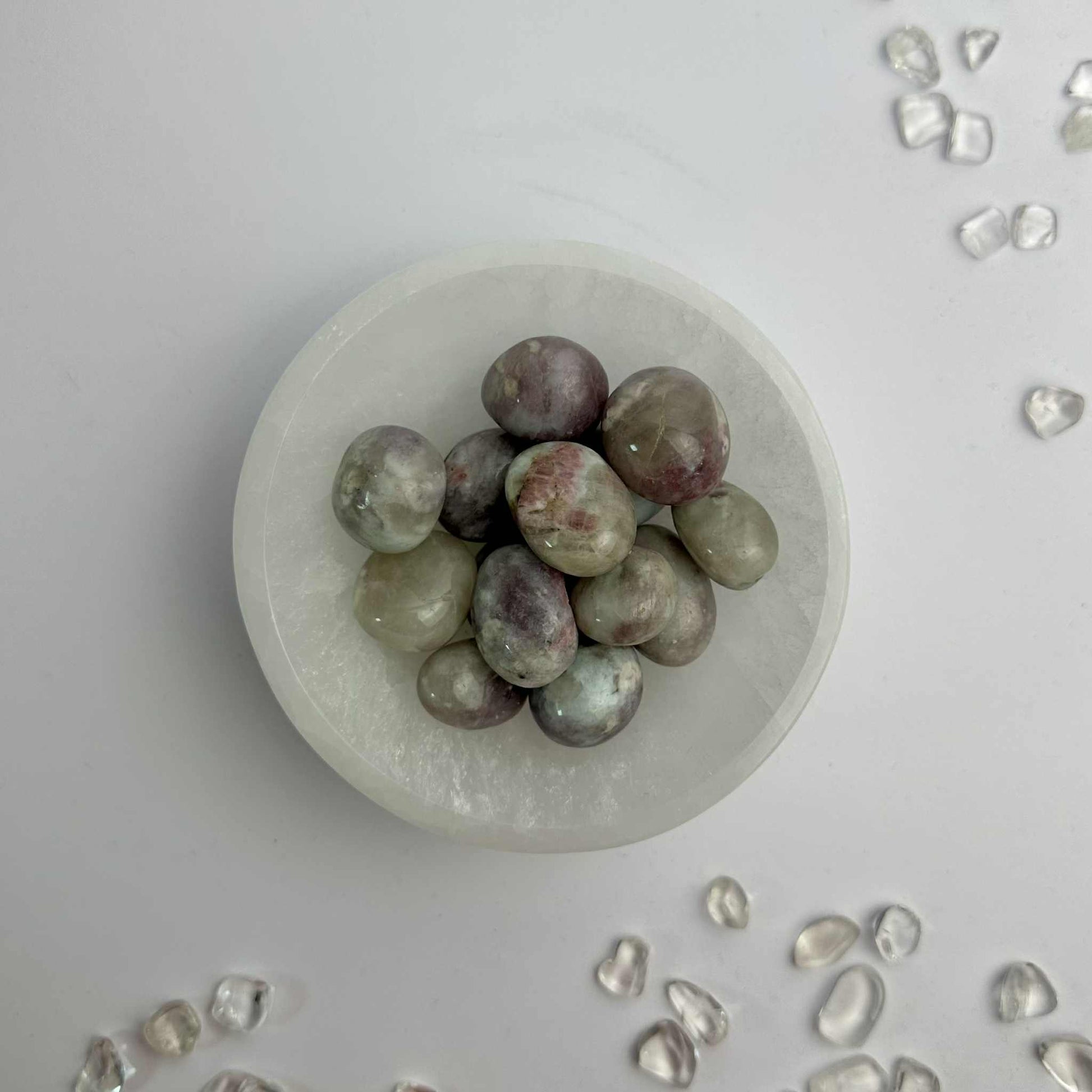 Pink Tourmaline tumble stones promote emotional healing, self-love, and compassion by opening and balancing the heart chakra, fostering joy, and attracting love and trust. They are used to soothe distress, calm anxious feelings, release past hurts, and inspire trust in love and relationships.